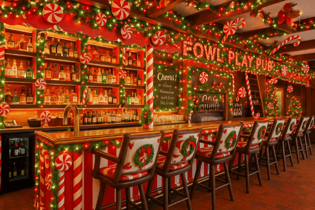 For the month of December, The Fowl Play Pub & Taproom will be transformed into the Peppermint Pub with twinkling lights, seasonal flavors, and cheerful vibes.