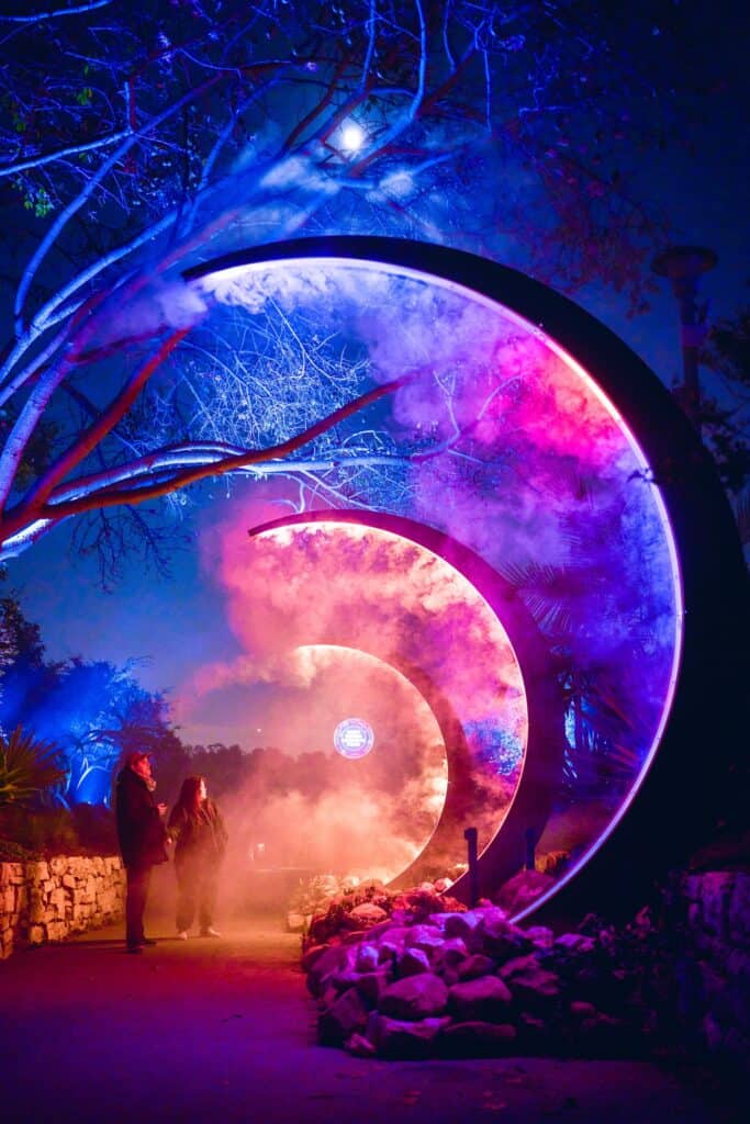 This year, the garden is introducing a brand-new experience called Night Glow. It features light installations curated by artists to create the perfect blend of “botanical beauty with luminous creativity.” Stunning light displays illuminate the buildings throughout the garden.