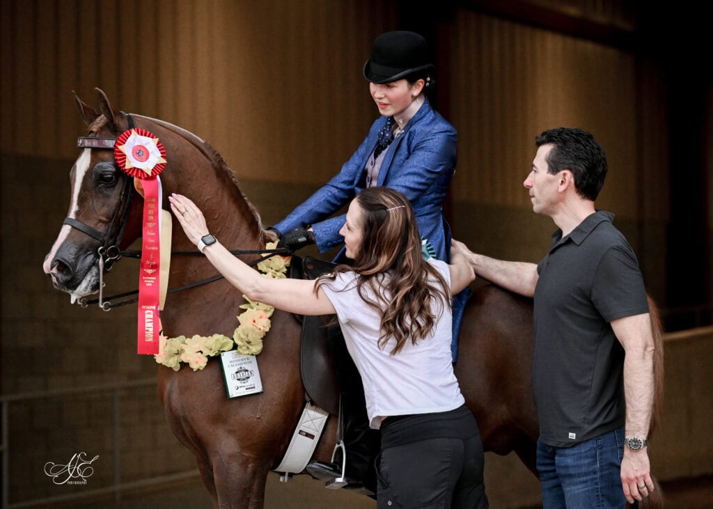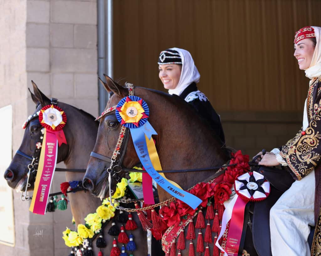 Certain competitions are also crowd favorites. Horses at Liberty classes—where horses perform loose in the arena to music—are unique to Arabian horse shows and consistently draw large audiences. Mounted Native Costume classes, featuring Bedouin-inspired attire for both horse and rider, highlight the breed’s desert heritage.